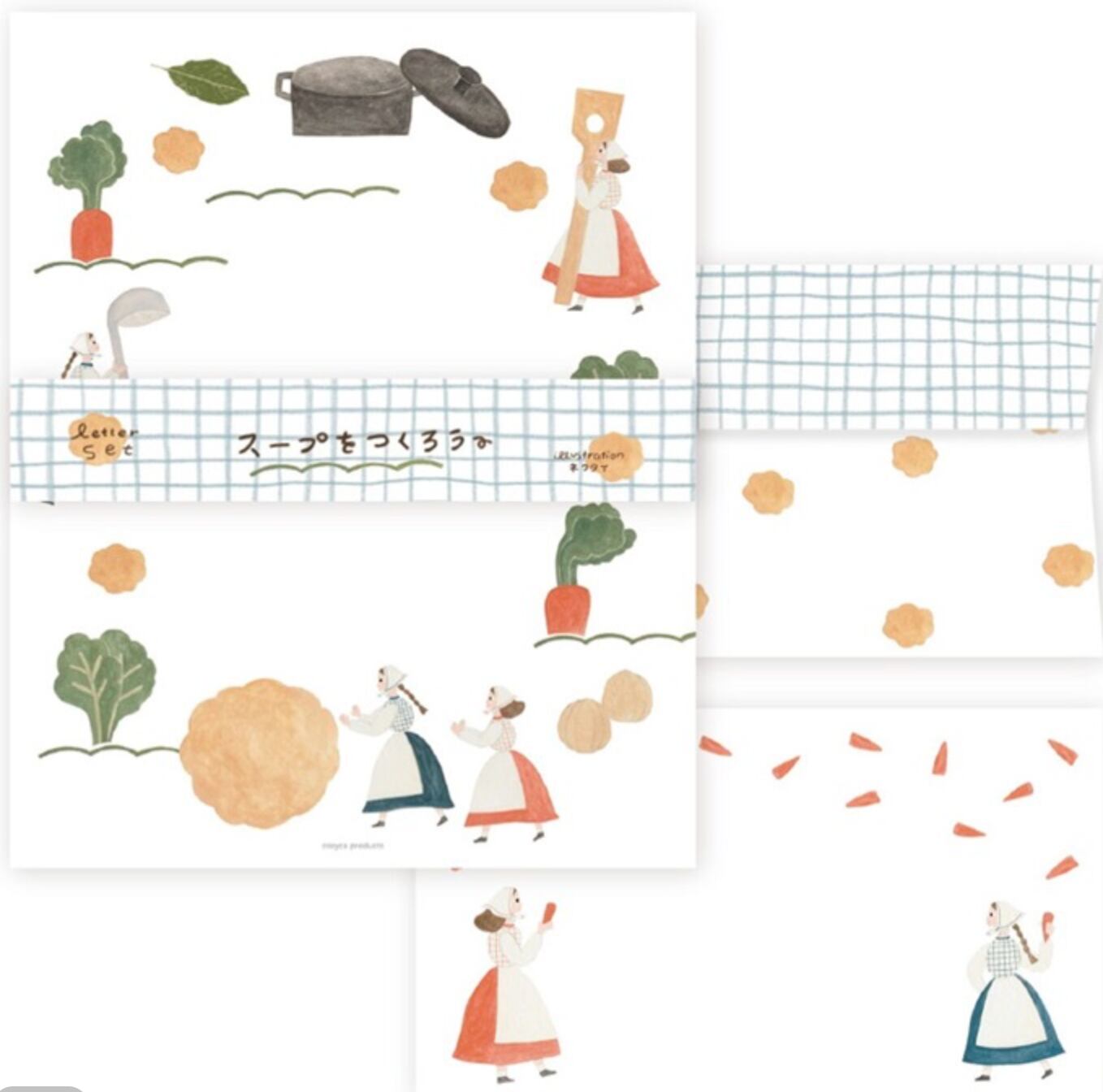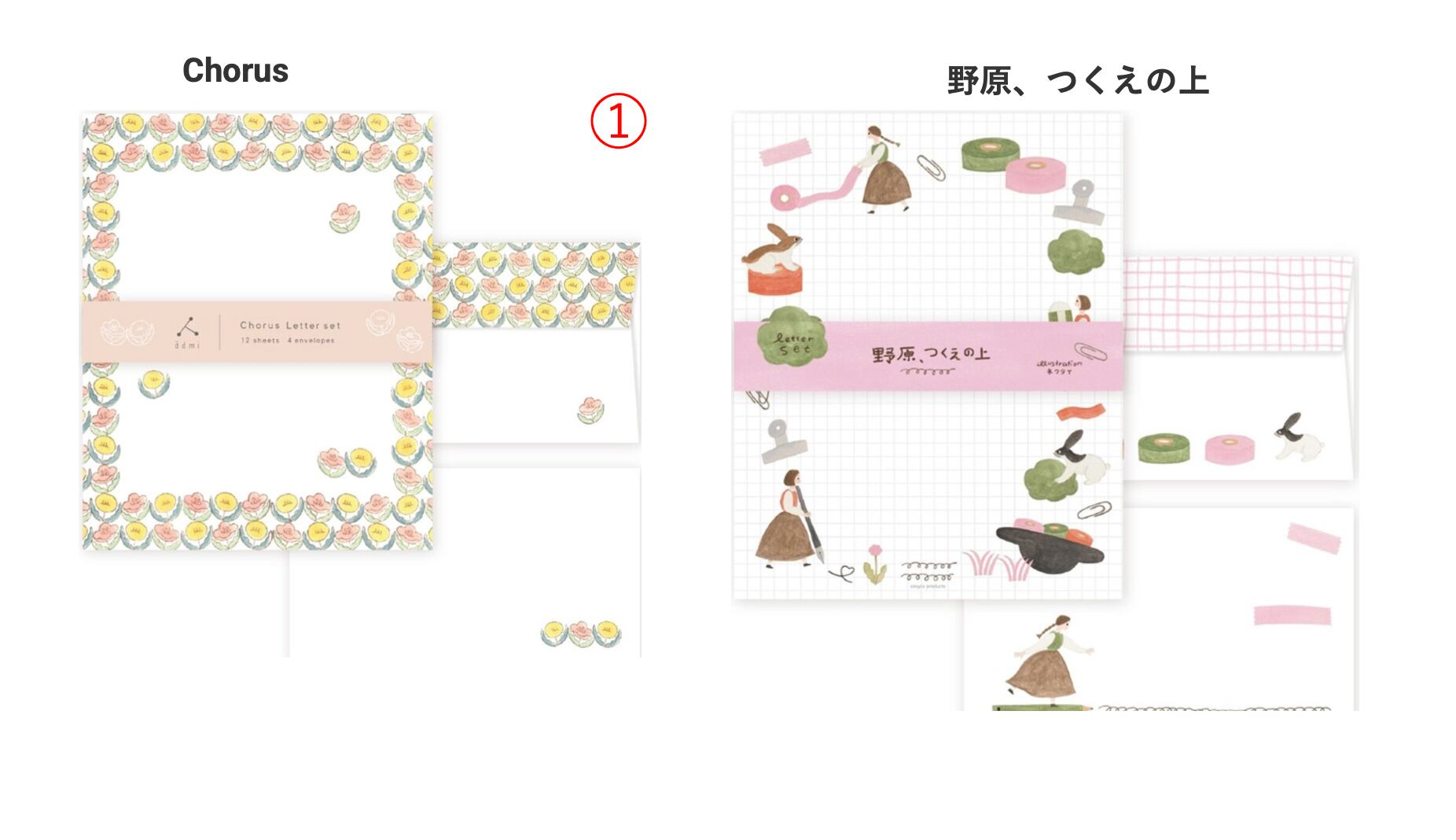 イラストレーターユニット・ネクタイさんのレターセットとテキスタイルブランド・adomiさんのレターセットのセットです。