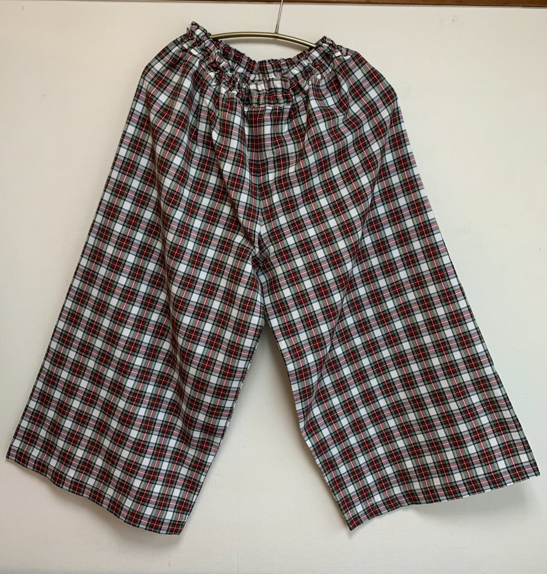 ウエストはゴムでサイズを調節いただけます。お届けの際は緩めにゴムを糸で止めています。調節して結んでからお履きください。