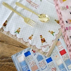 懐かしく、温かみのあるイラストが人気のイラストレーターくらはしれいさんのハンカチのご紹介です。レトロなデザインが海外絵本みたいです。