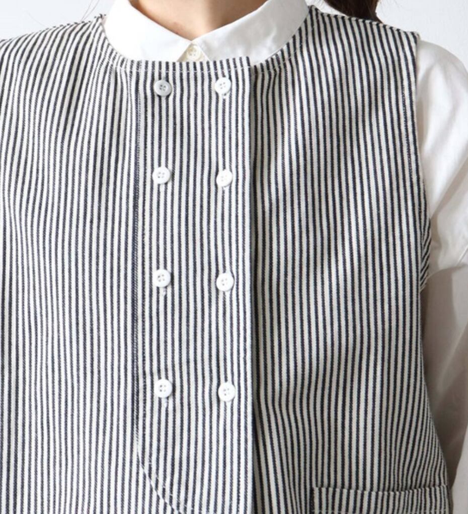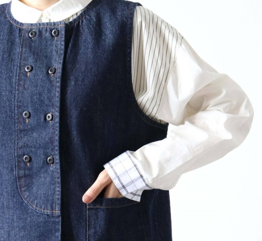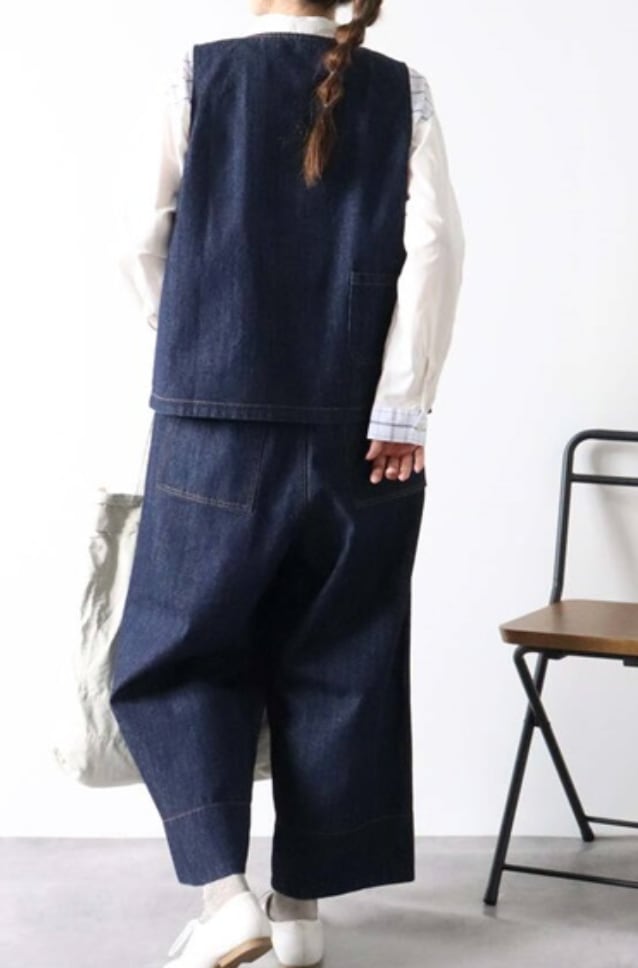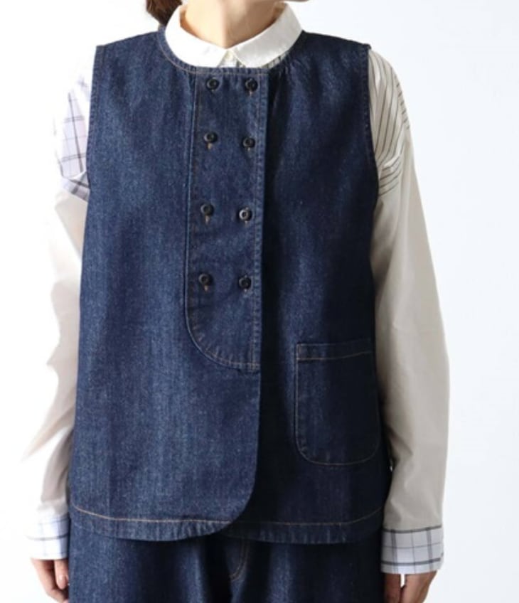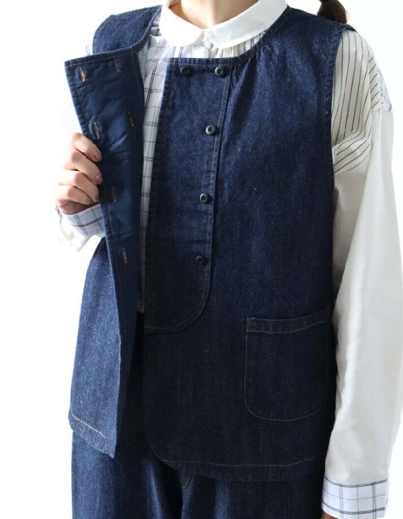綿素材のデニム風ベストのご紹介です。こちらのベストとてもおすすめです。