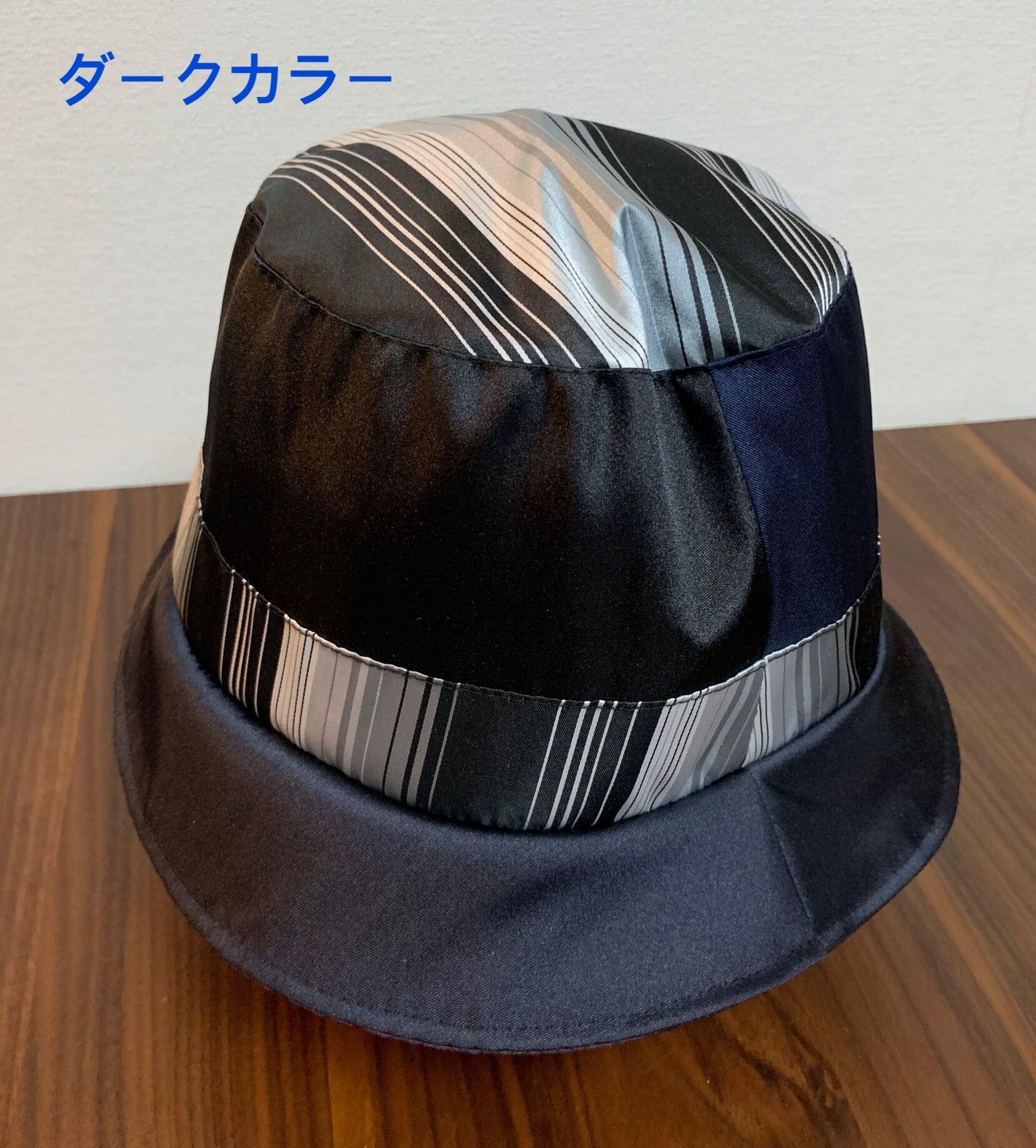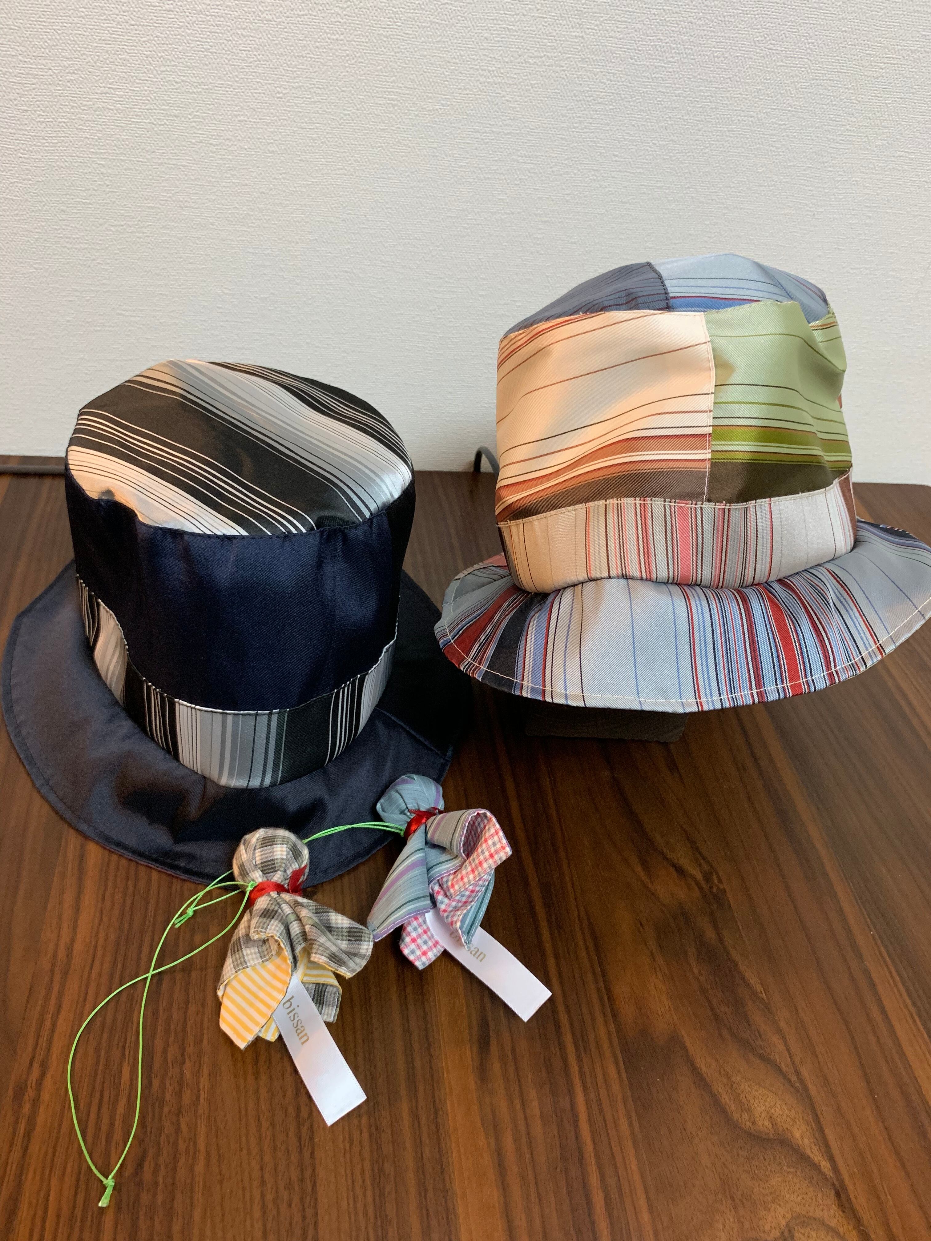ギャラリー関さんに傘の生地でレインハットを作って頂きました。小さくたたんでカバンに入れておけるので便利です。