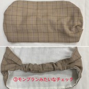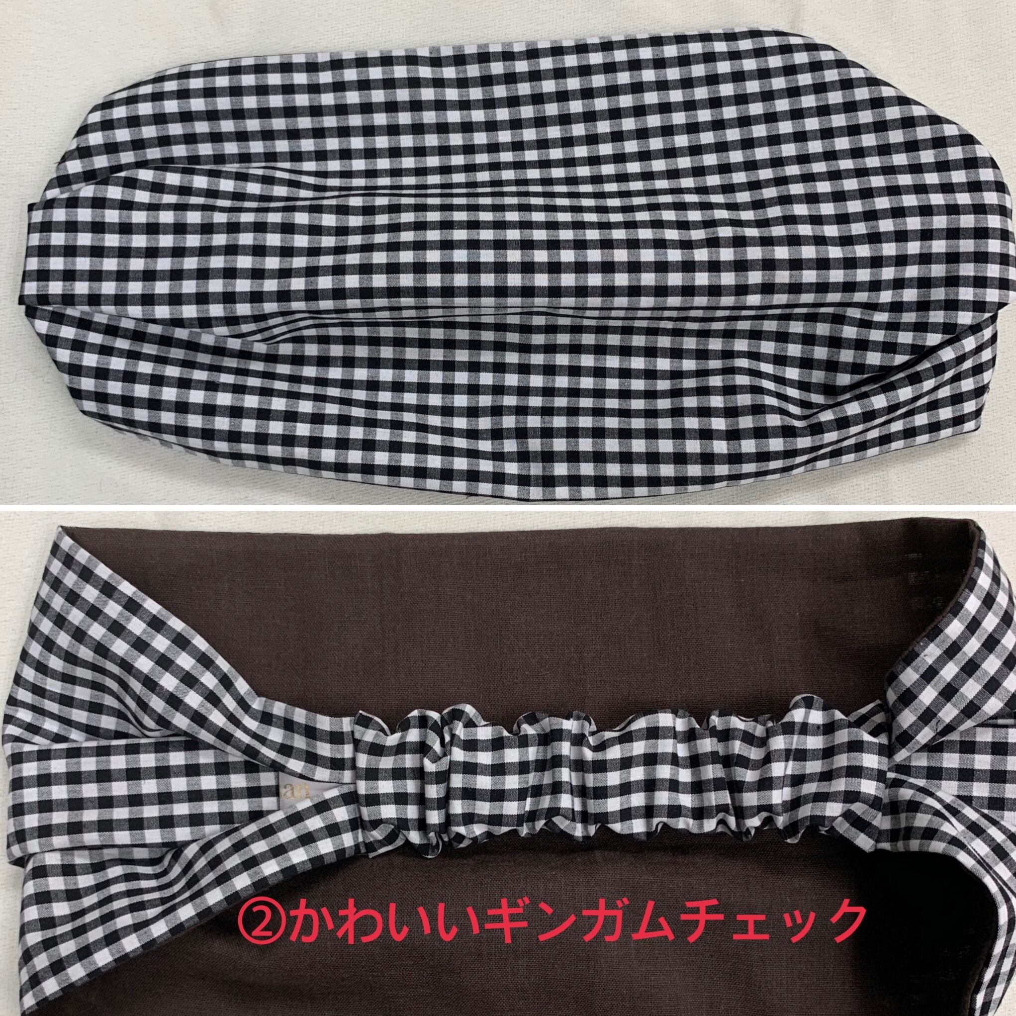 ねじってリボンみたいにしたり、裏表2枚の生地が見えるようにしたり、生地を広げて給食のおばさんの三角巾みたいにしたり、色々なふうにアレンジしてお使い頂けるターバン(ふうヘアーバンド)です。
