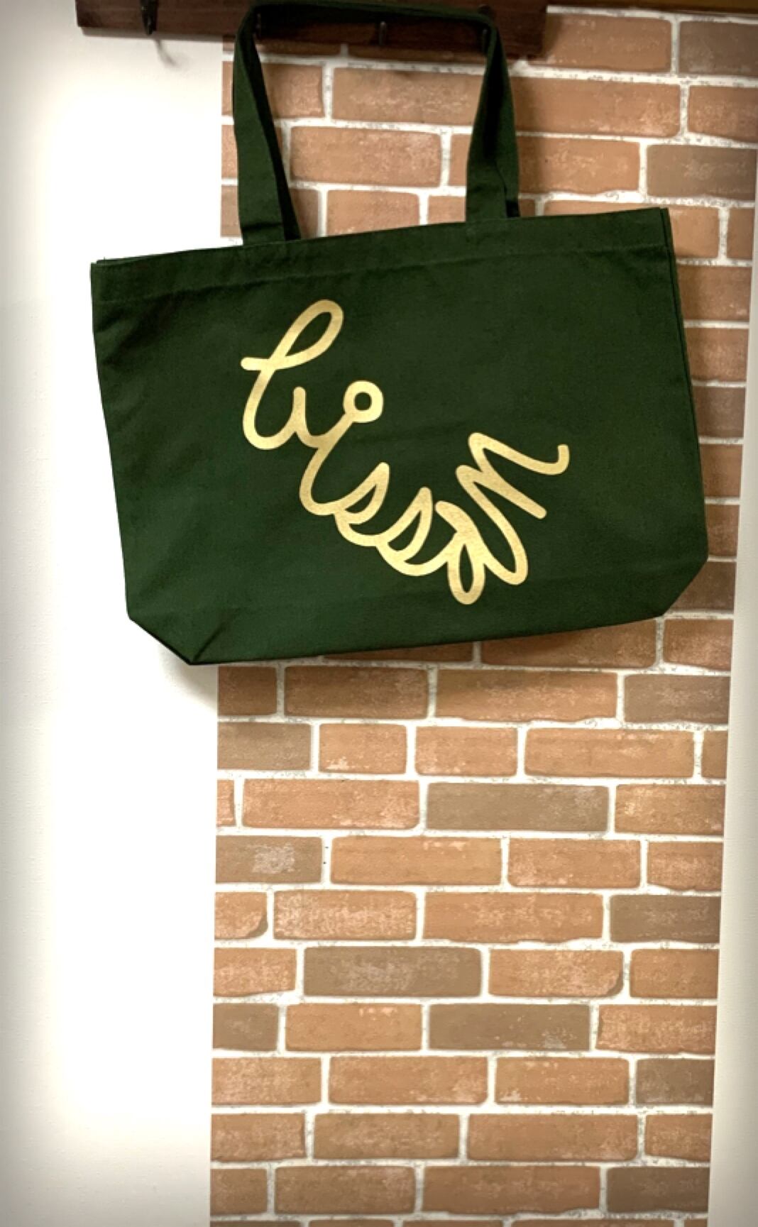 星みたいな金色のbissanロゴプリントはバッグの片面にだけ入っています。