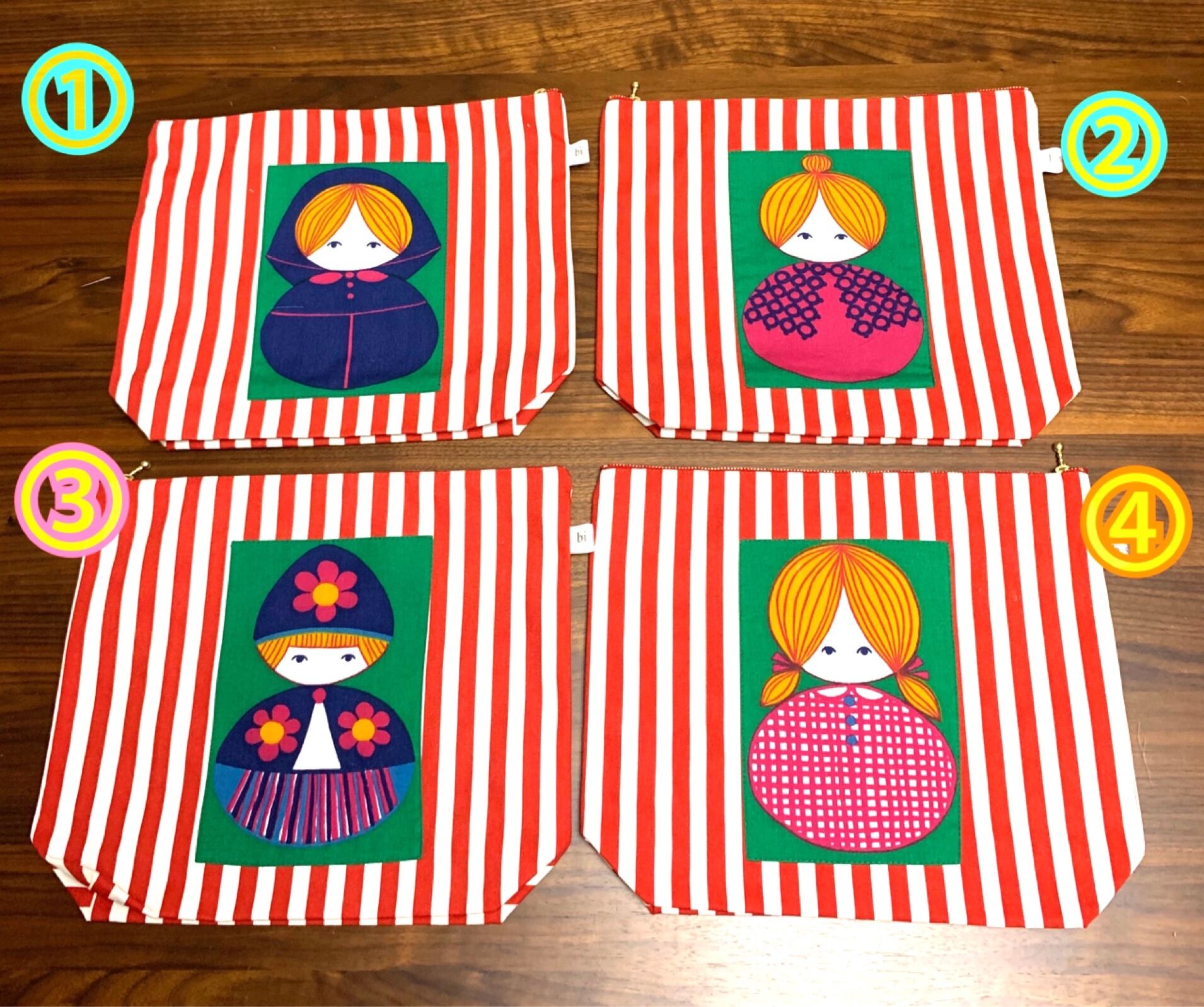 世界に1つ(4つありますが友達(人)の顔や服が違います)のポーチです。