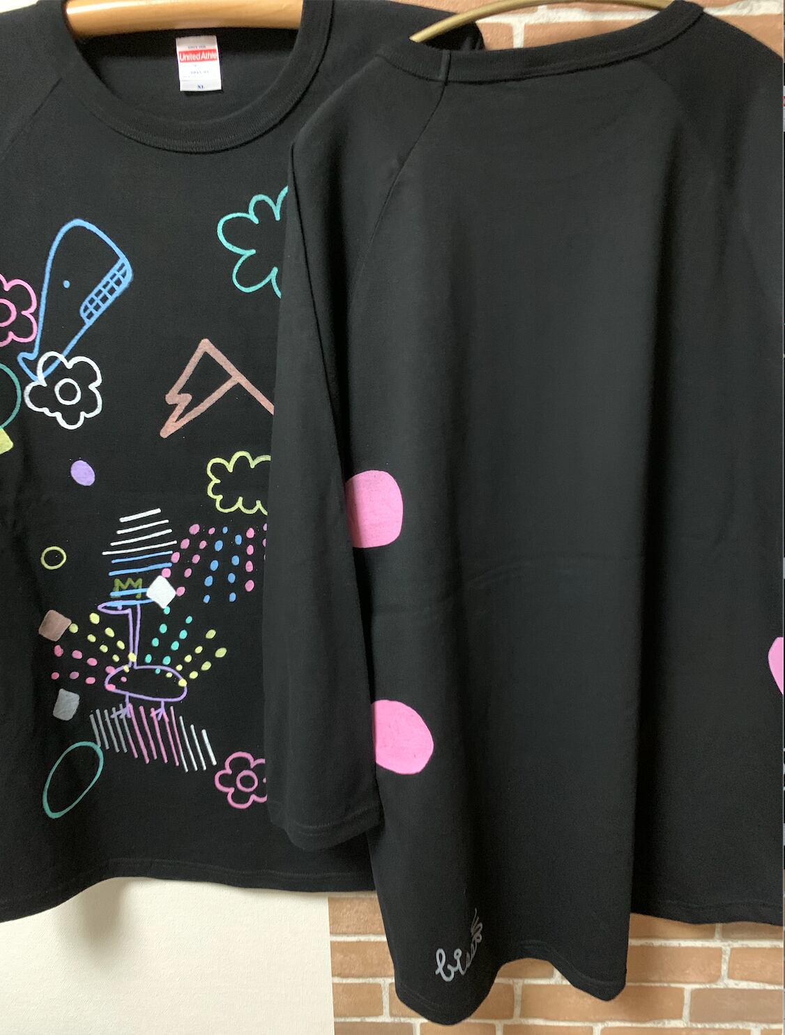 ティシャツ10枚全て絵(落書き)のプリント位置や色が少しず違う世界に1枚のteeシャツです。