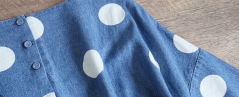 柔らかい6.5ozデニムに大きな水玉がプリントされています。