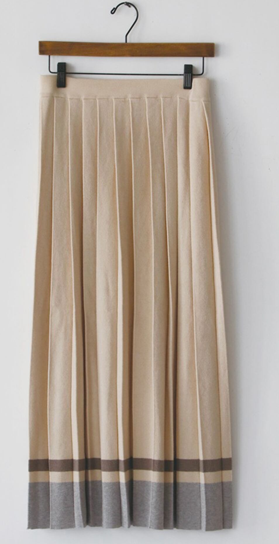 スカートの裾のボーダー柄がトラッドな印象のプリーツスカートです。