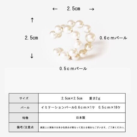 素材・成分:イミテーションパール0.6cm×1ケ 0.5cm×18ケ