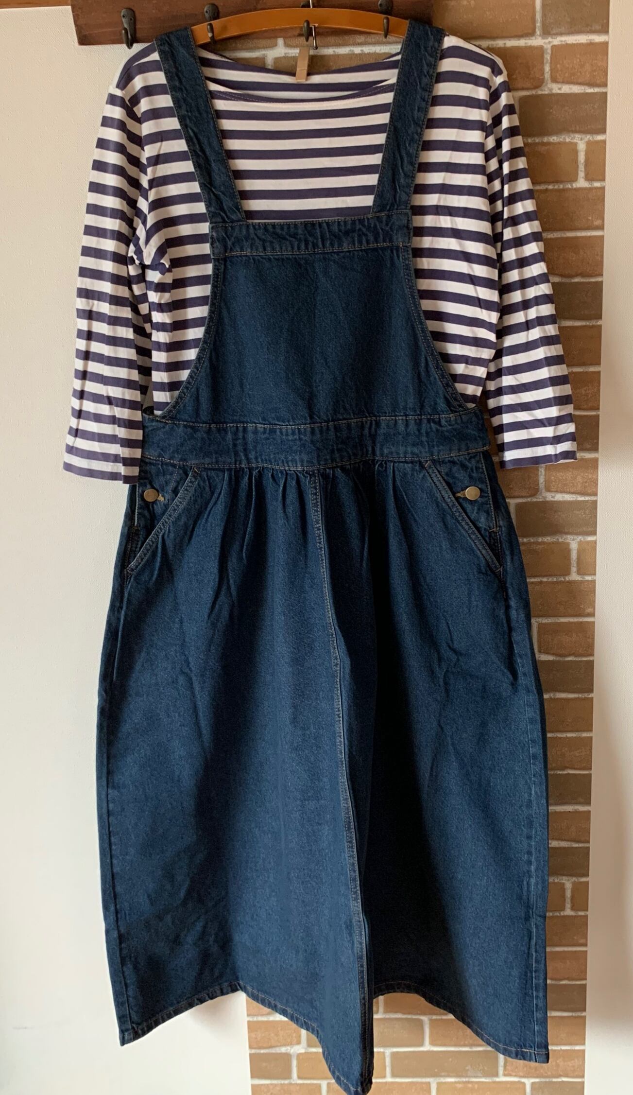 オールシーズン愛用できるデニムのエプロン風、サロペットスカートです。かわいいです。