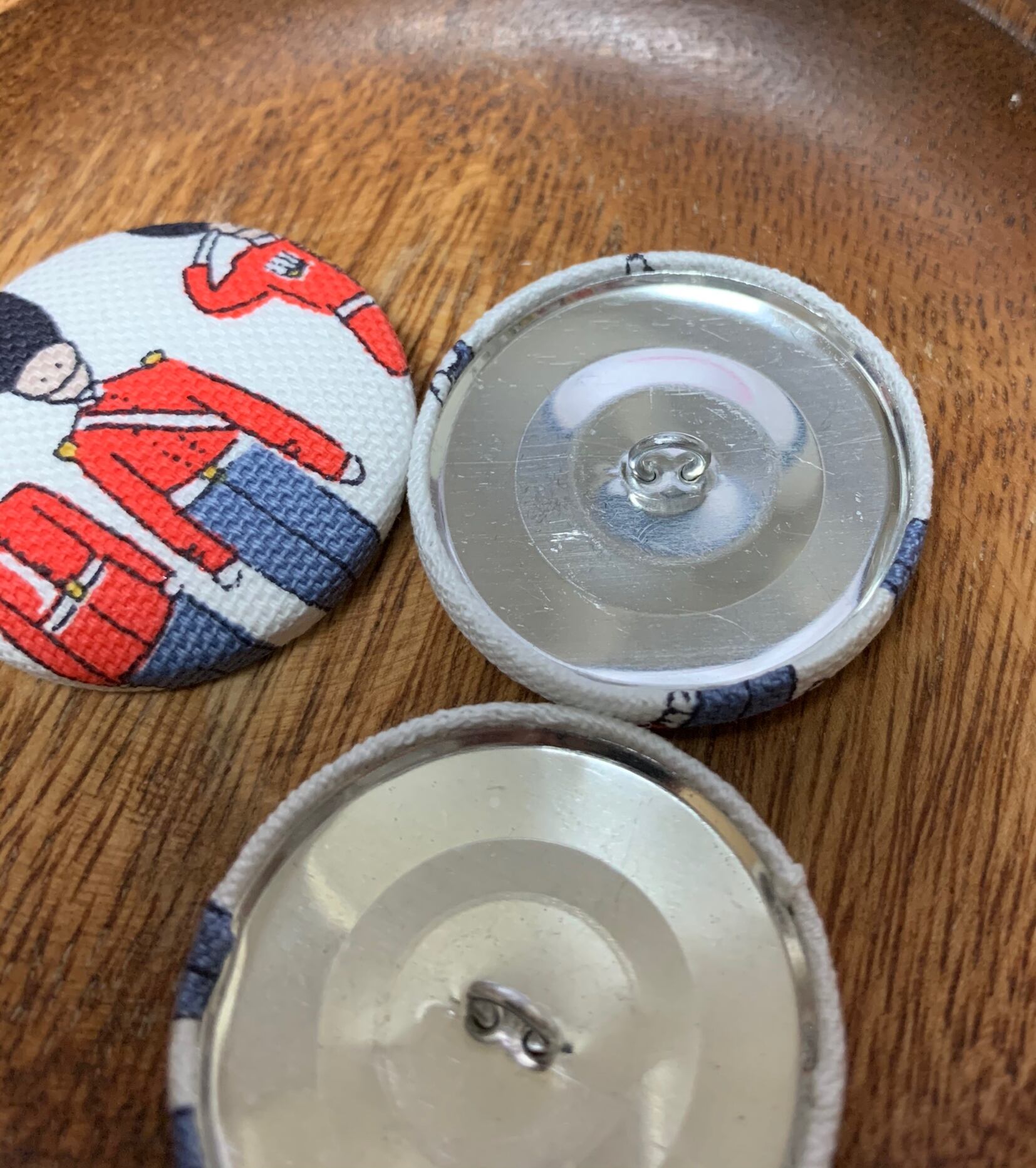 小山田丸さんが作った 38mmの衛兵さん柄のくるみボタンです。