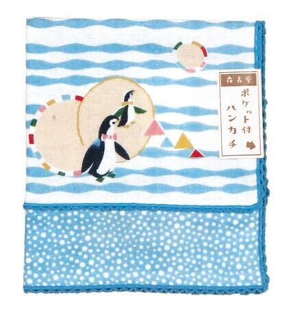 shop bissan 夜長堂 二重ガーゼポケットハンカチ お散歩マーチ