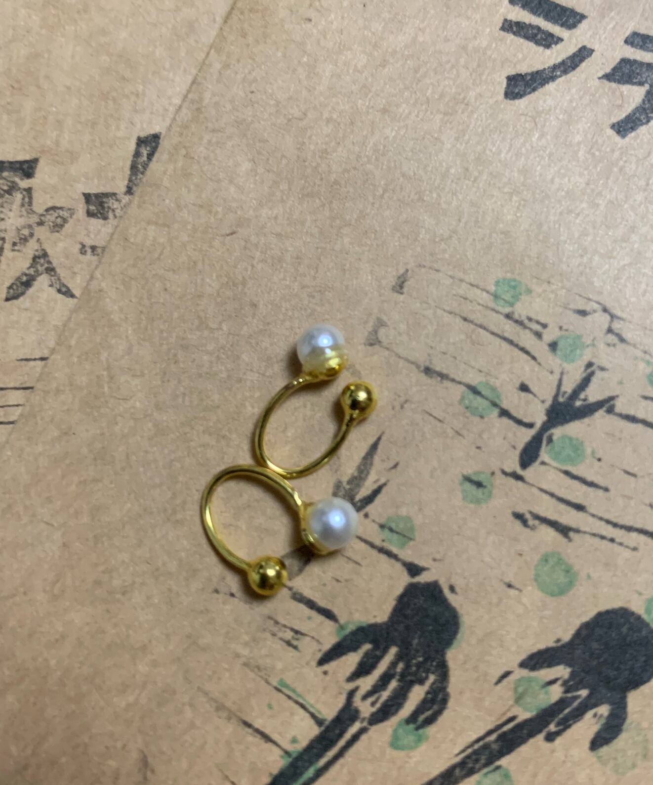 イヤカフ: ゴールド金具と3mmフェイクホワイトパール2個