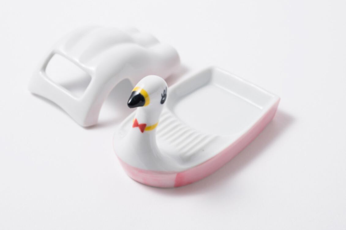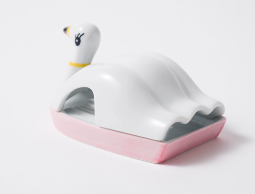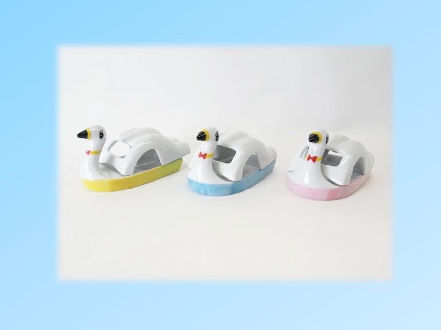 公園の湖に浮かぶスワンボートがトレイになりました。