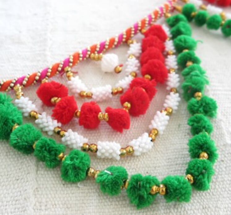 インドで作られているカラフルなボンボン飾りのガーランドです。