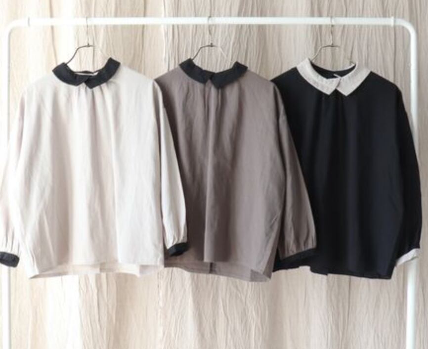 襟元が素敵なプルオーバーのご紹介です。後ボタンもなんだかとってもおしゃれで素敵です。