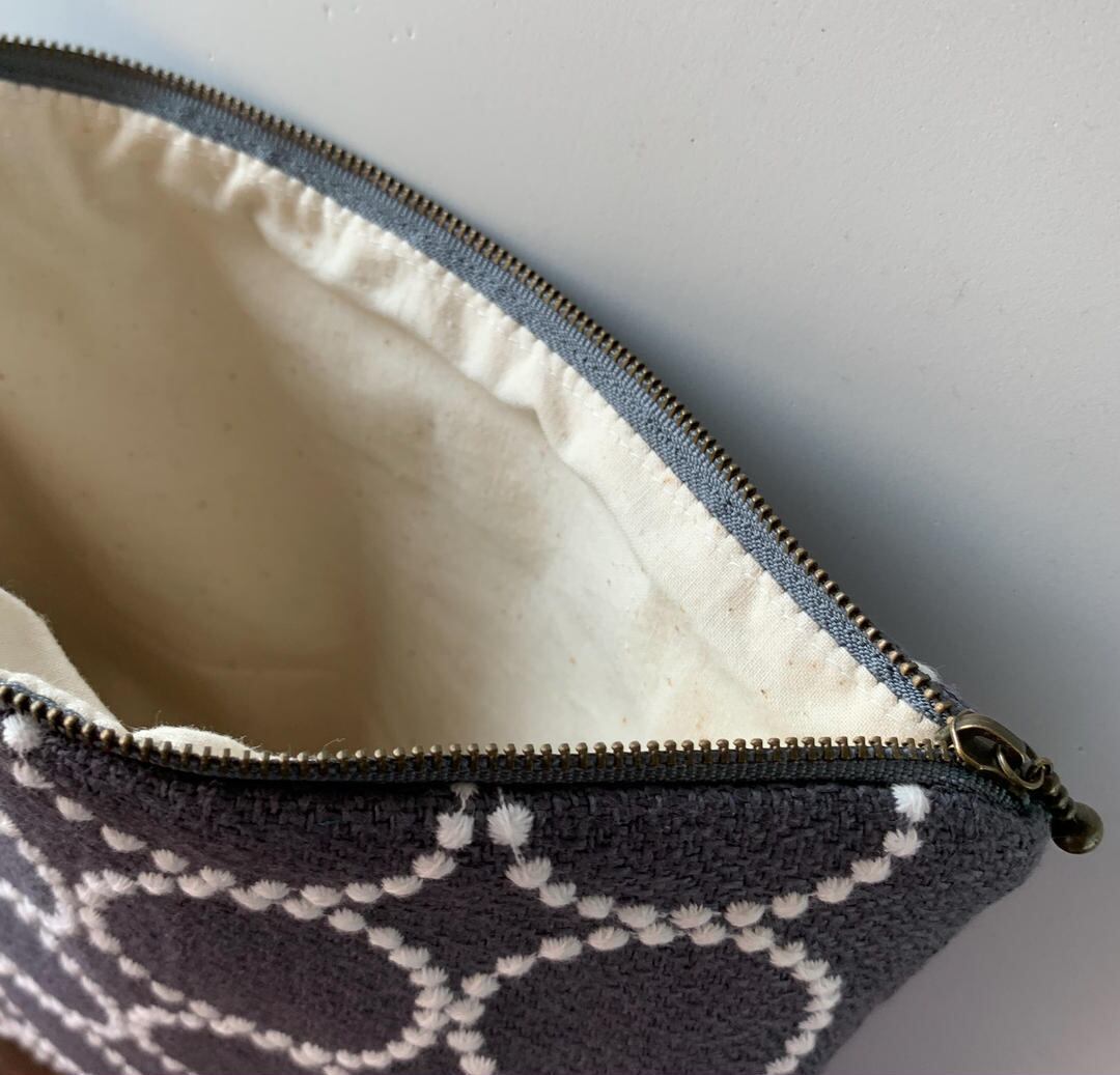 大きいサイズなので色々なものが入って便利なポーチです。クラッチバッグとしてお使いいただいても素敵だと思います。