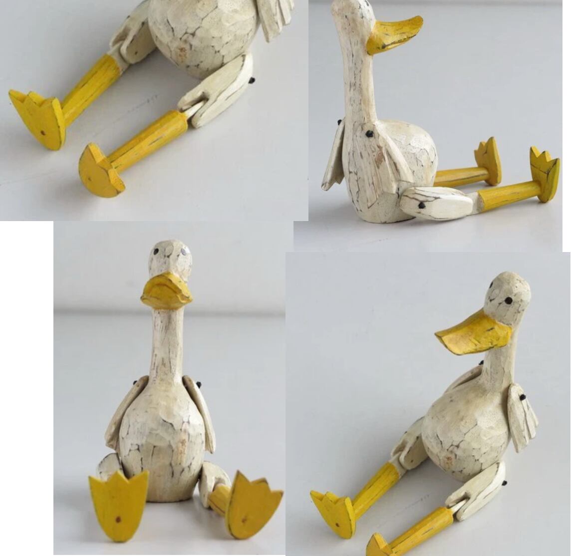 ビンテージ風の仕上げがされている木製のアヒルパペットはちょこんと座ることが出来ます。