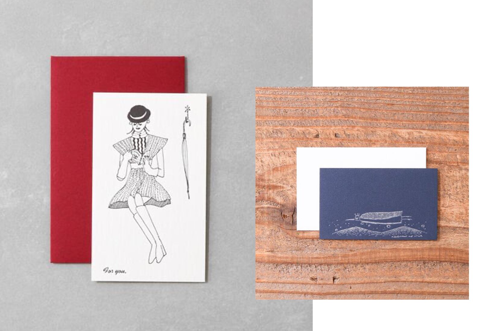 shop bissan [活版カムパネルラ]のメッセージカード 「読書する女の子」・「島々を飛ぶ鳥」