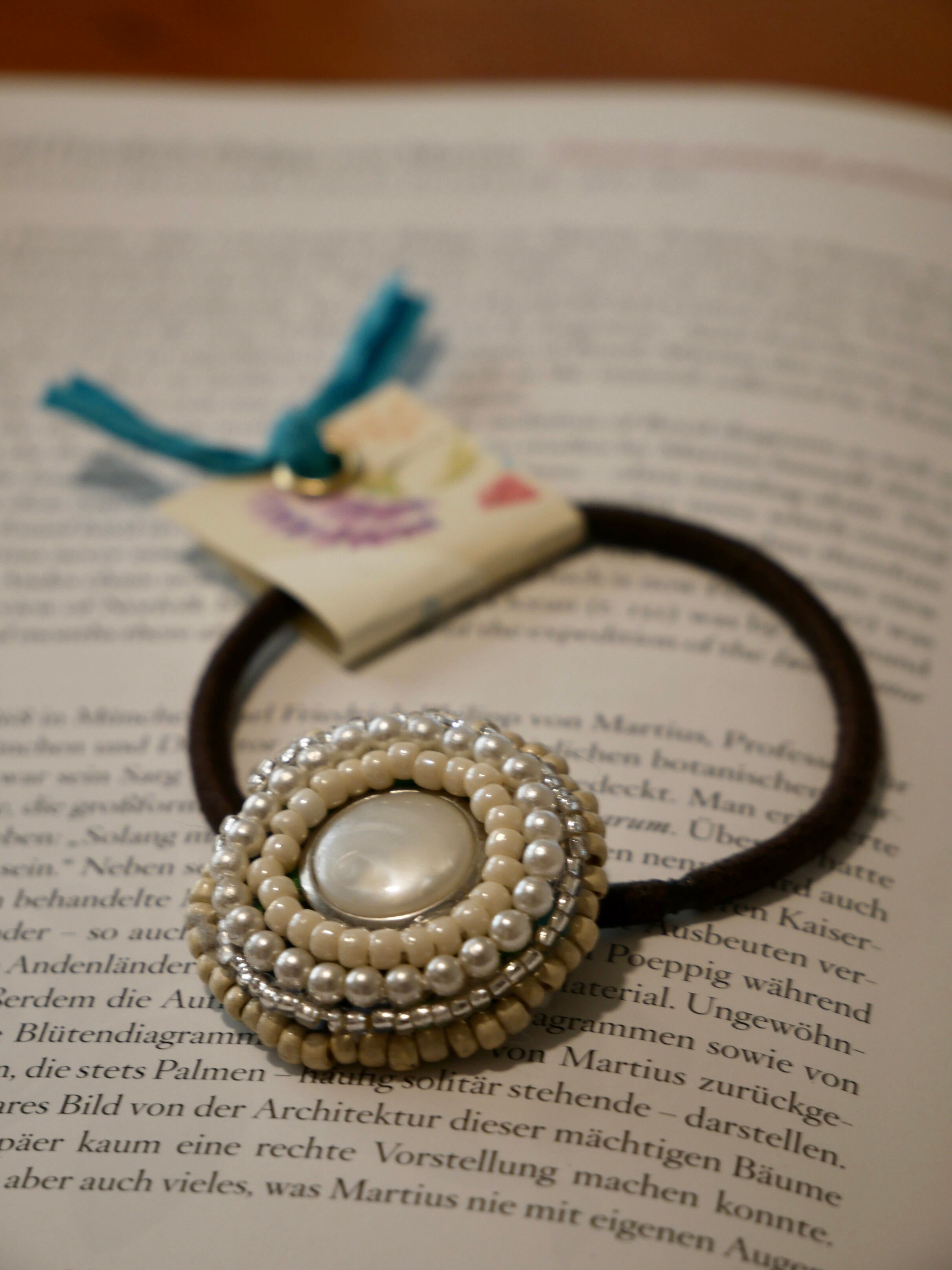 「moon+」さんからボタンとビーズのヘアゴムが届きました。