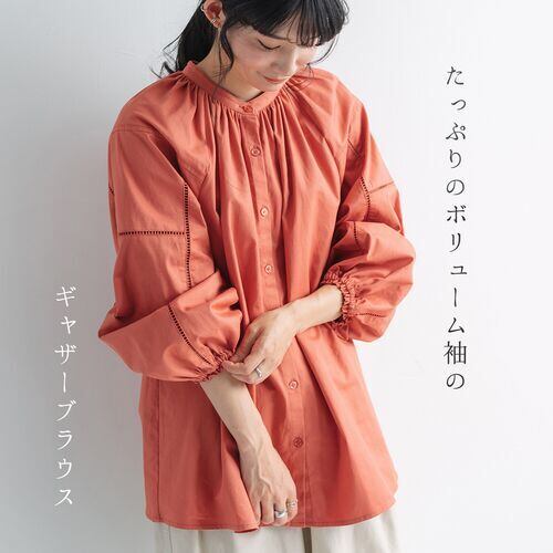 たっぷり袖が素敵なギャザーブラウスのご紹介です。