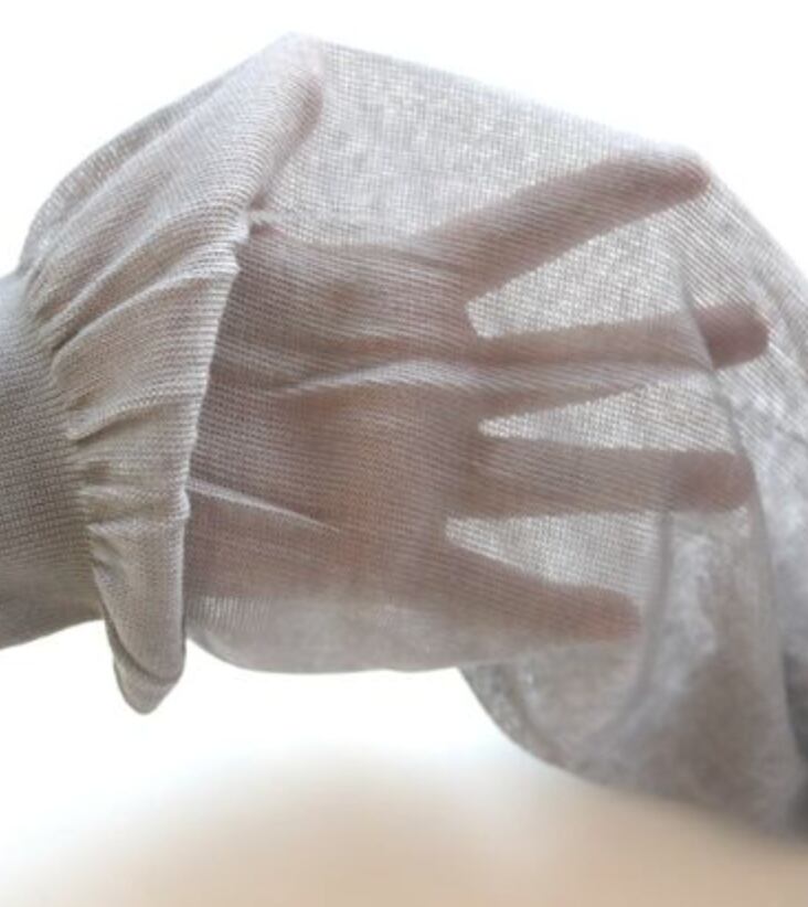 綿糸を使ってゆるく編み立てられた生地は、薄手でよく伸びるのでとても快適です。