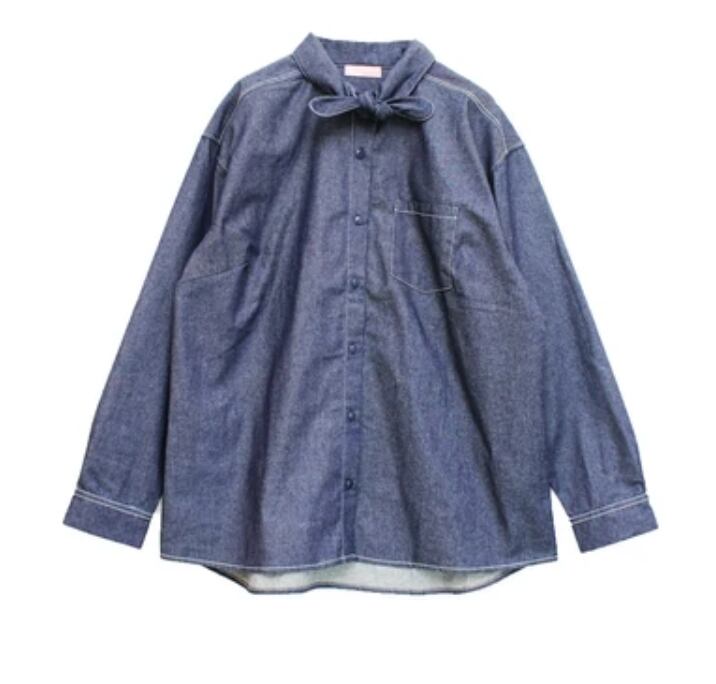リボンが素敵なボウタイデニムシャツのご紹介です。