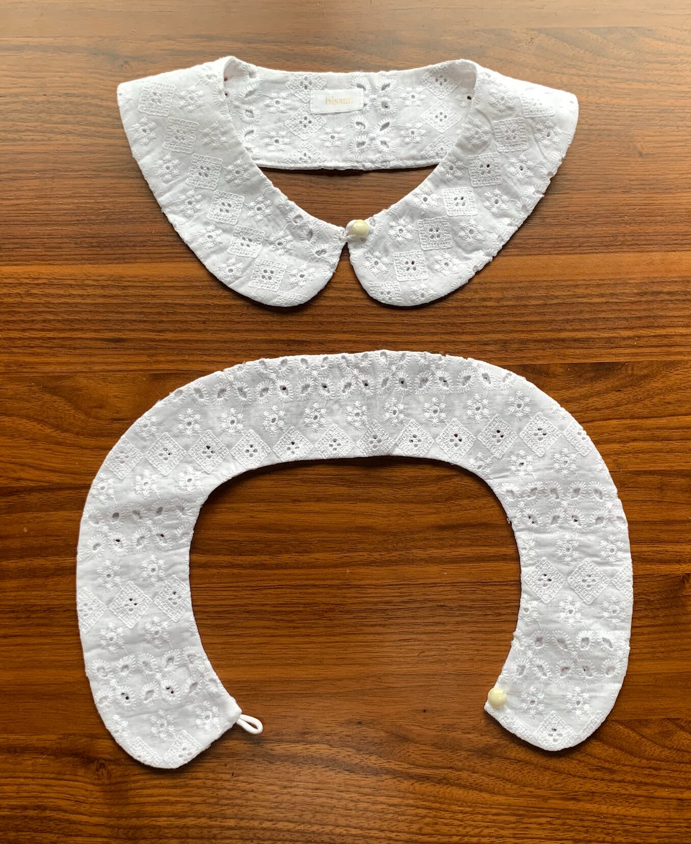 bissanの定番商品の1つ、便利なつけ襟のご紹介です。コットンのレースが素敵です。