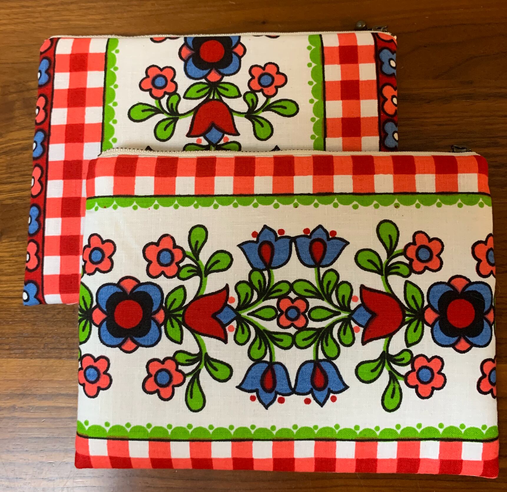 以前にご好評いただきました、柄が本当に素敵なスカートの生地で小さなポーチができました。