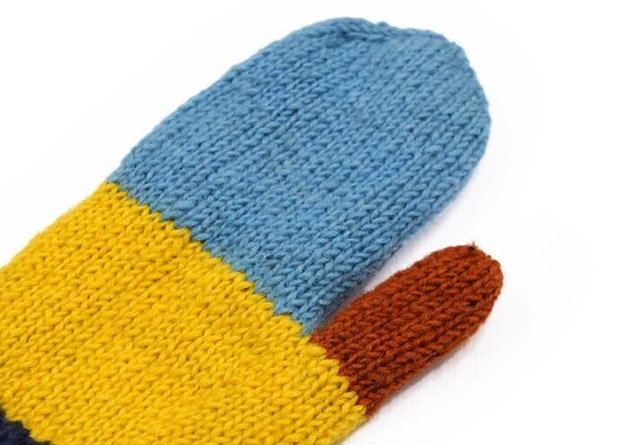 絵本に出てきそうなニットのミトン手袋のご紹介です。