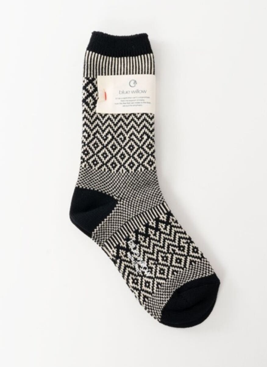 素敵な素敵な靴下のご紹介です。足元から見えるノルディック風の柄編みがとても素敵です。