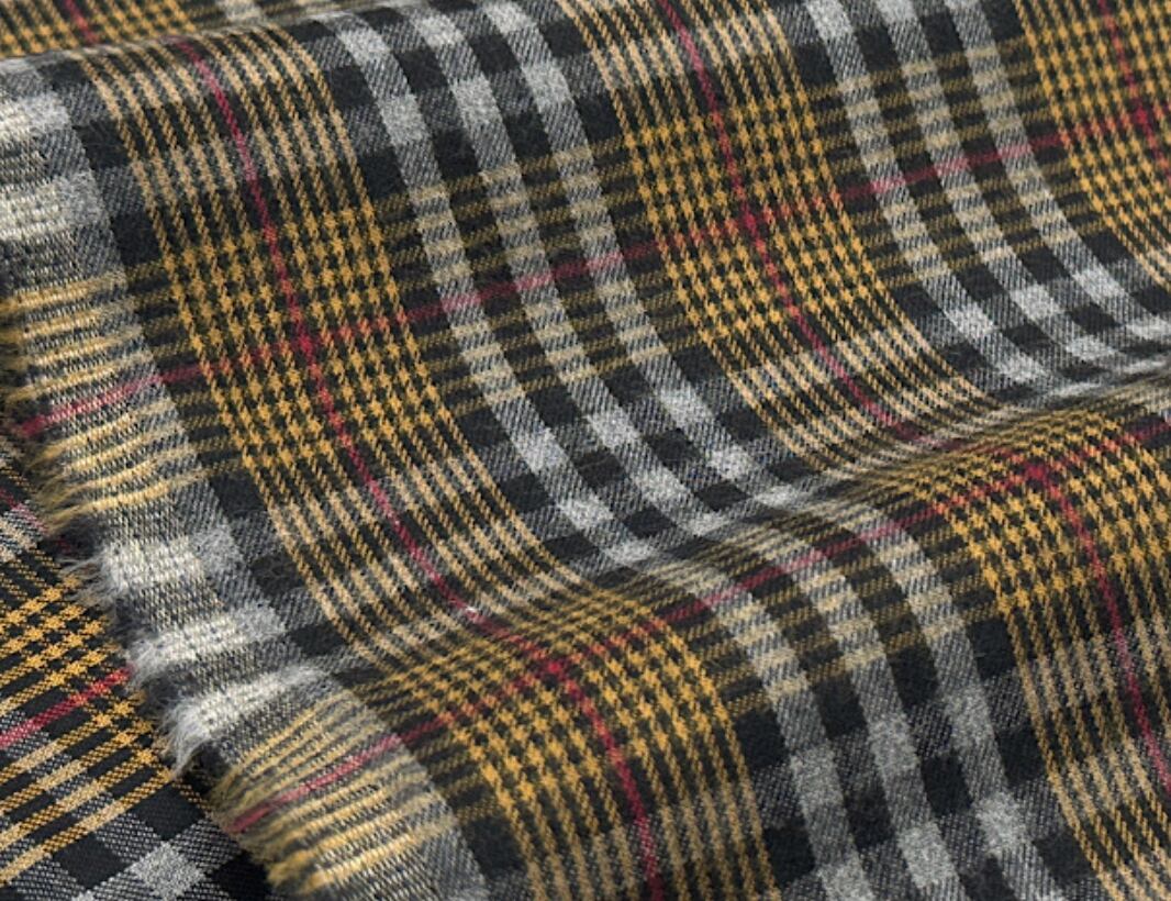 黄色X茶色Xグレー:先染シャギー起毛チェック生地使用